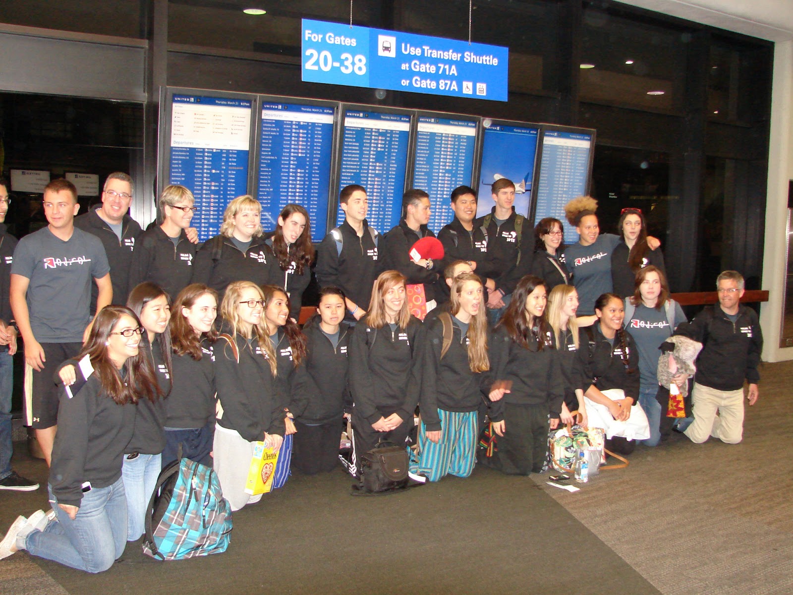 Great excitement amongst 22 teenagers at SFO today. A bit of a scramble with United Airlines, but everyone finally got their boarding passes and they left on the first leg of their journey to Washington DC!